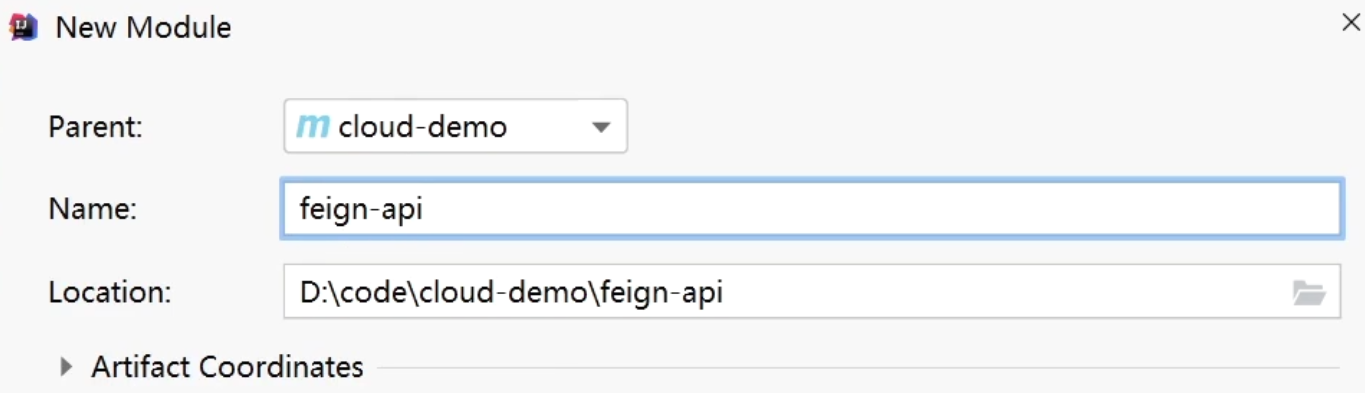 首先创建一个module,命名为feign-api: