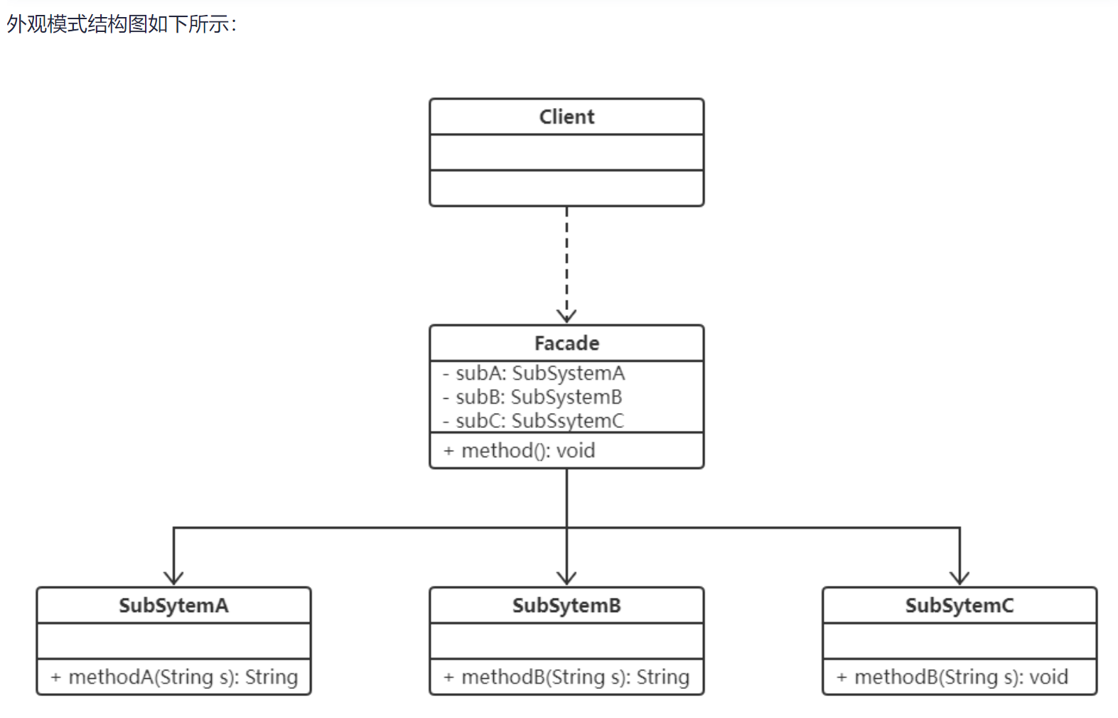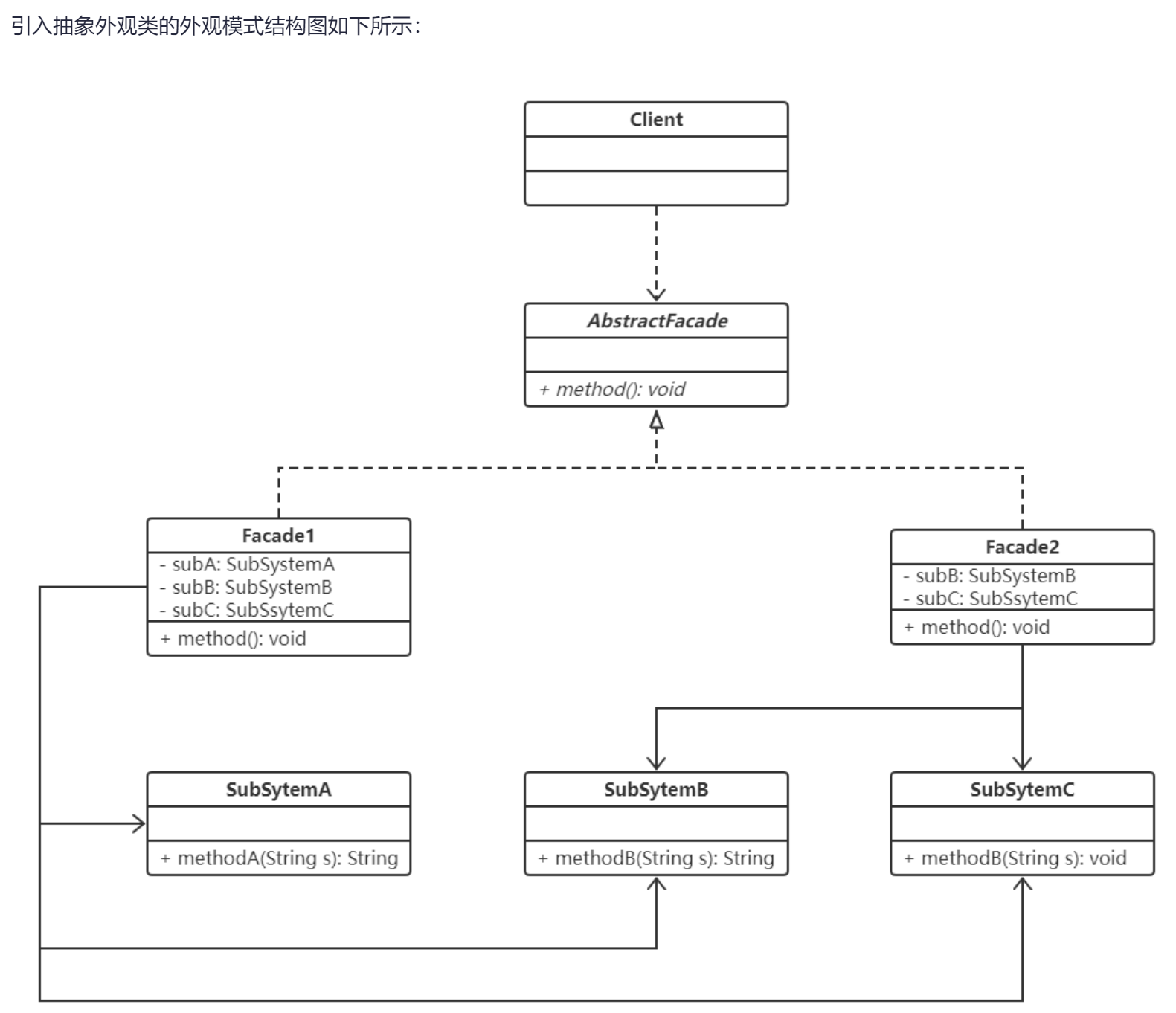 引入抽象外观类之后,客户端可以针对抽象层编程,对于新的业务需求,不需要修改原有的外观类,直接增加一个新的具体外观类即可,符合开闭原则。