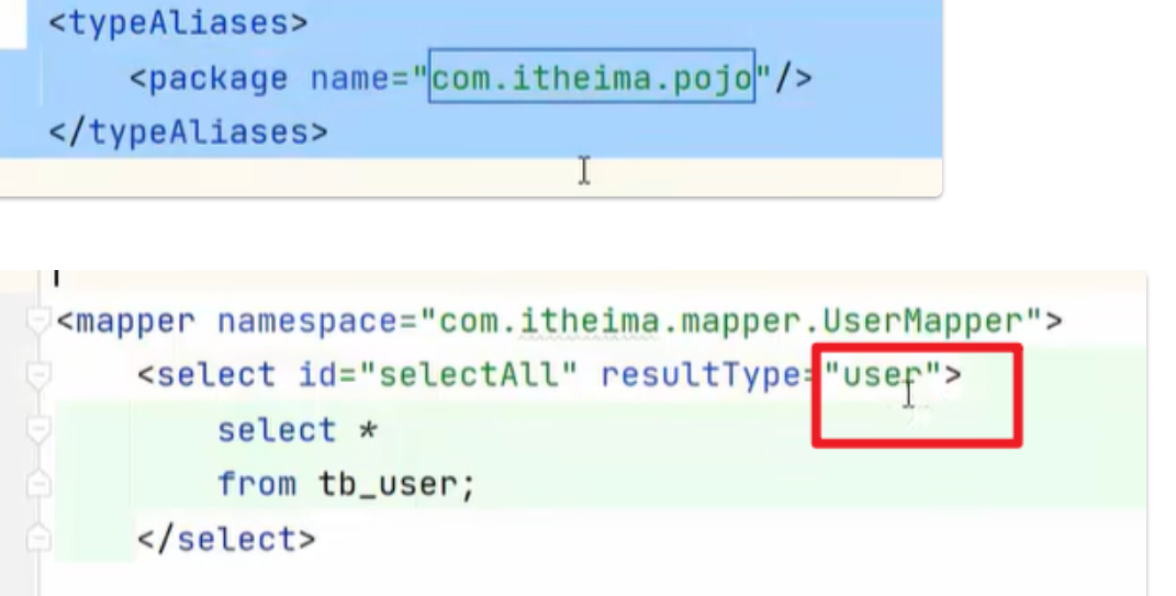 比如配置别名,就不需要填写前面的包名