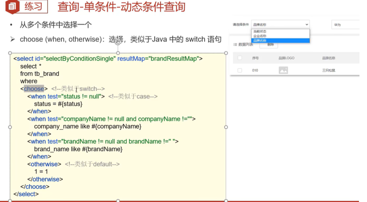 单条件动态查询