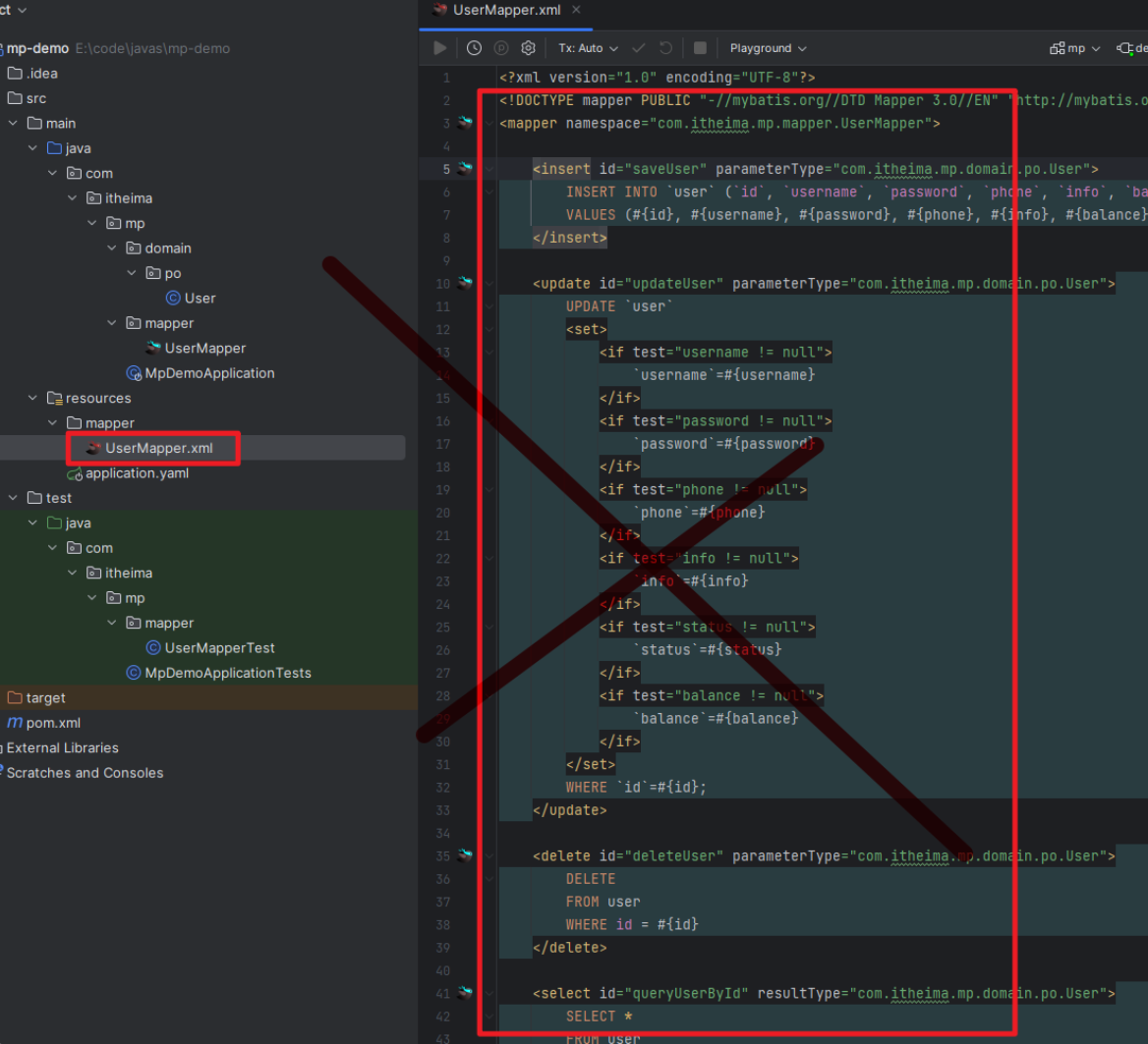 然后把xml里面的sql全部干掉,mapper里面的方法也不需要了,有爹了(BaseMapper)!