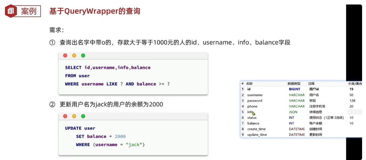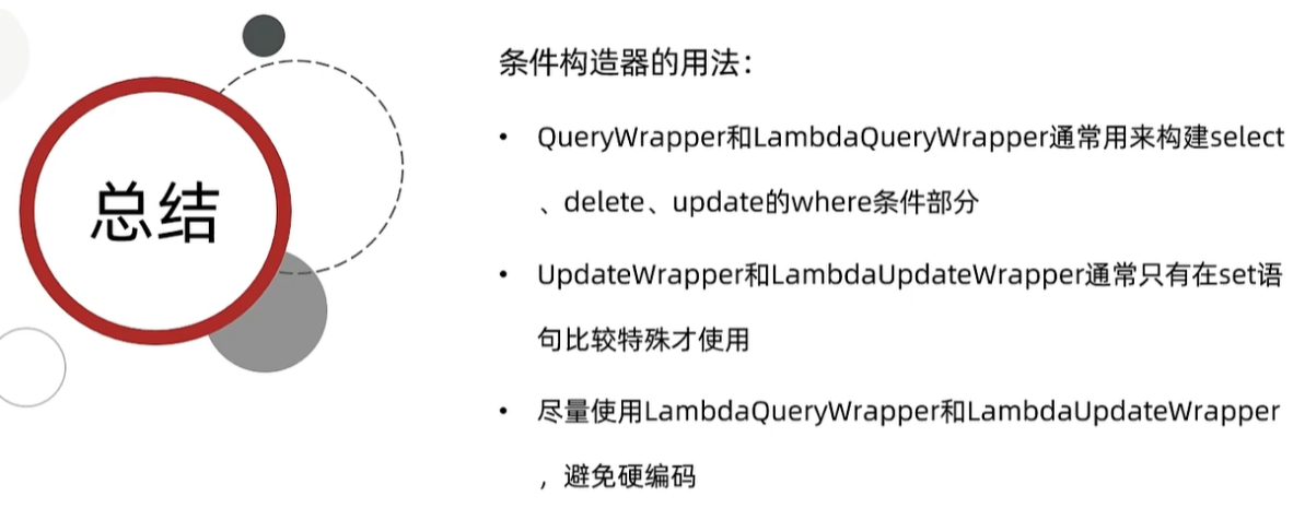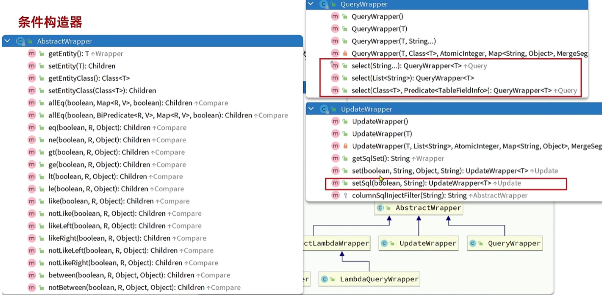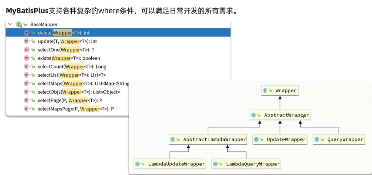 前面经历的都是通过主键id进行的CRUD,但是真是业务中,很多都是通过各种条件来CRUD,所以MP提供了条件构造器。