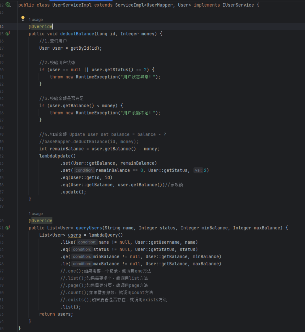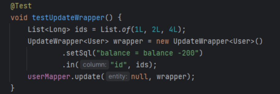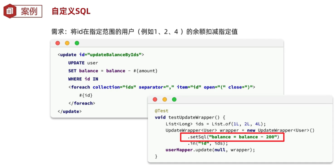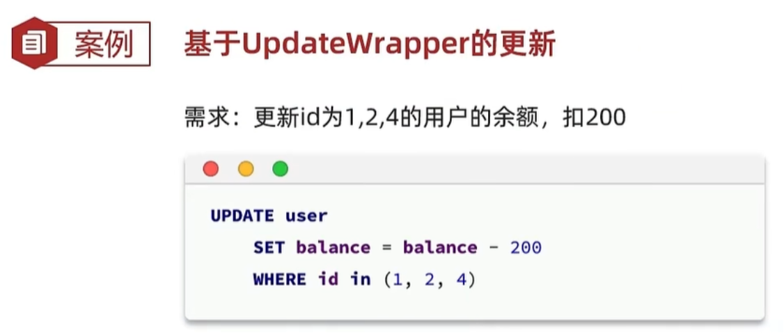 纯xml还好,如果用mp的UpdateWrapper实现,"balance = balance - 200"相当于业务代码,在业务代码中有sql操作是不合理的。