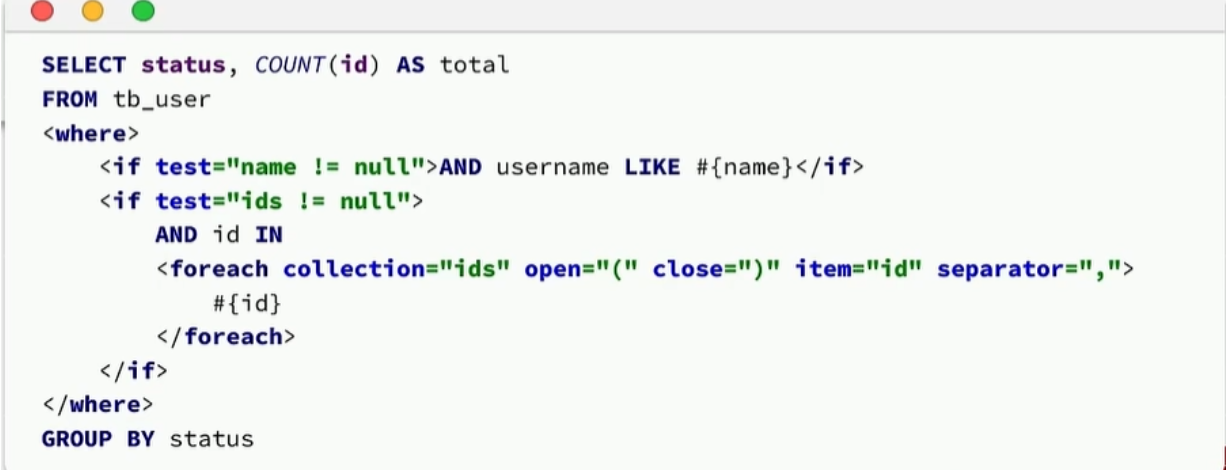 这种也是,select中 count还起别名,如果还是硬编码就违背了开发规范。要是不用mp的话又会很麻烦,那就没有俩全的方案吗,答案就是自定义SQL。