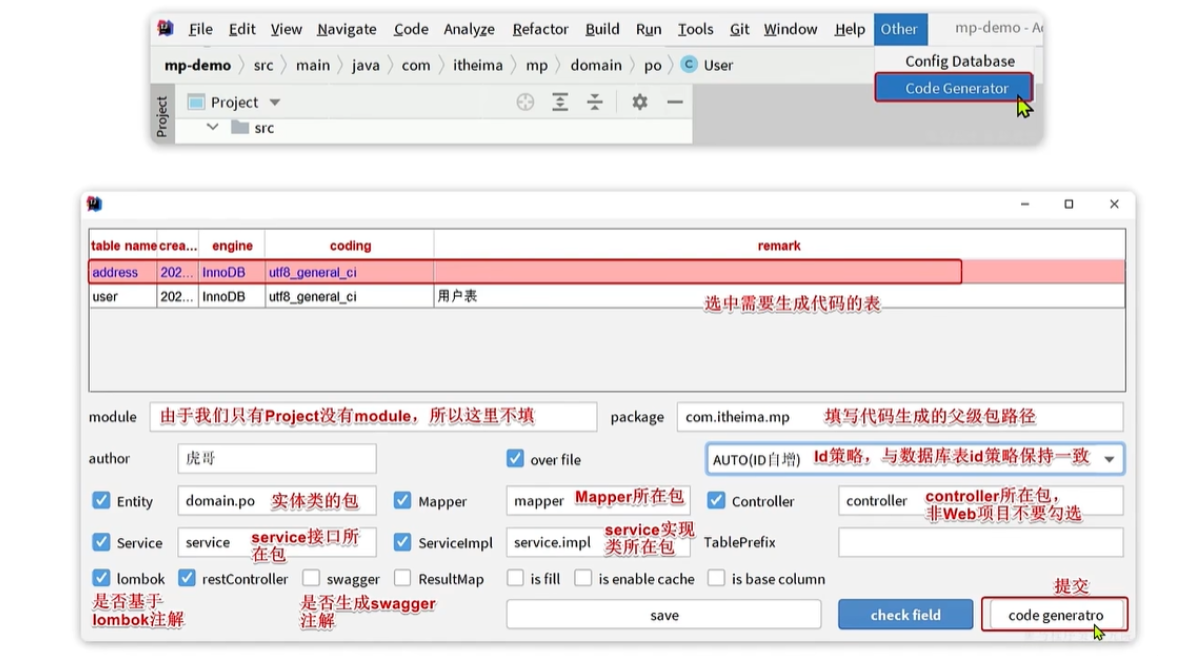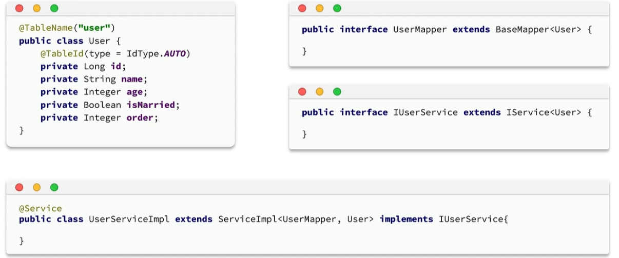如果不是User表,而是Order表,是可以自动生成的。可以使用MyBatisPlus插件,它是Idea插件,很好用。