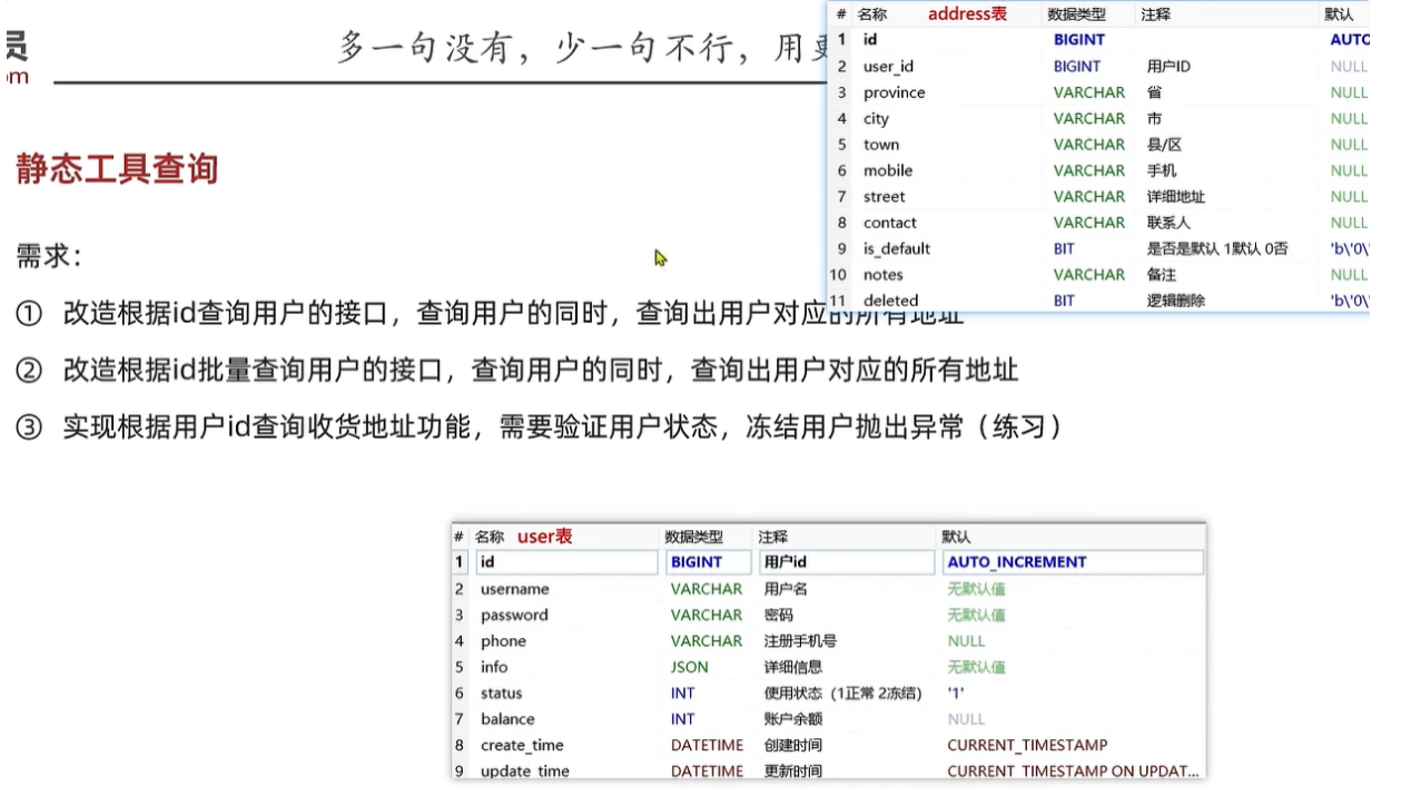 有些业务,需要在UserService里面查Address,就需要注入AddressService,有些业务需要在AddressService中注入UserService,就会产生循环依赖。就可以通过静态工具来解决,不需要注入。
