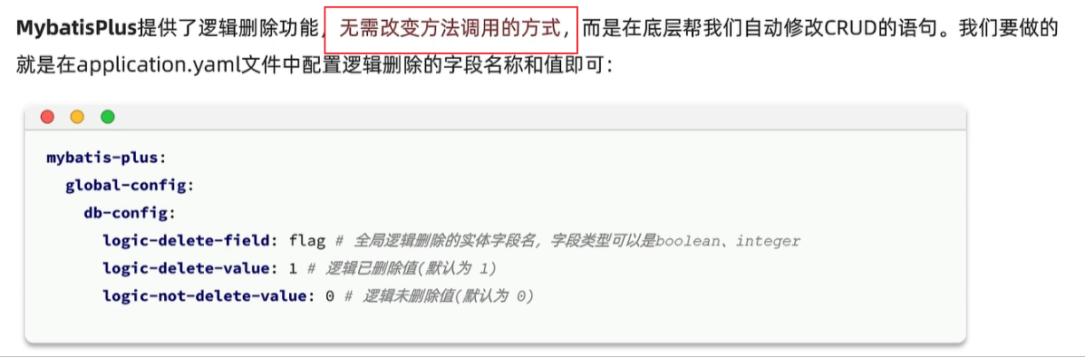 配置之后,即便是remove删除方法,它也会自动转换成update语句,把逻辑删除自动置位已删除。