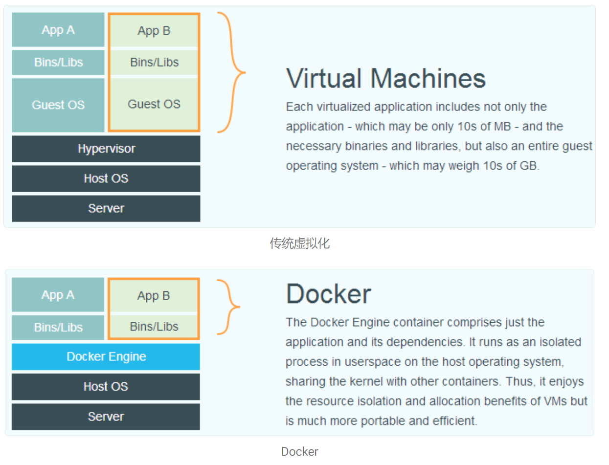 Docker 在容器的基础上,进行了进一步的封装,从文件系统、网络互联到进程隔离等等,极大的简化了容器的创建和维护。使得 Docker 技术比虚拟机技术更为轻便、快捷。