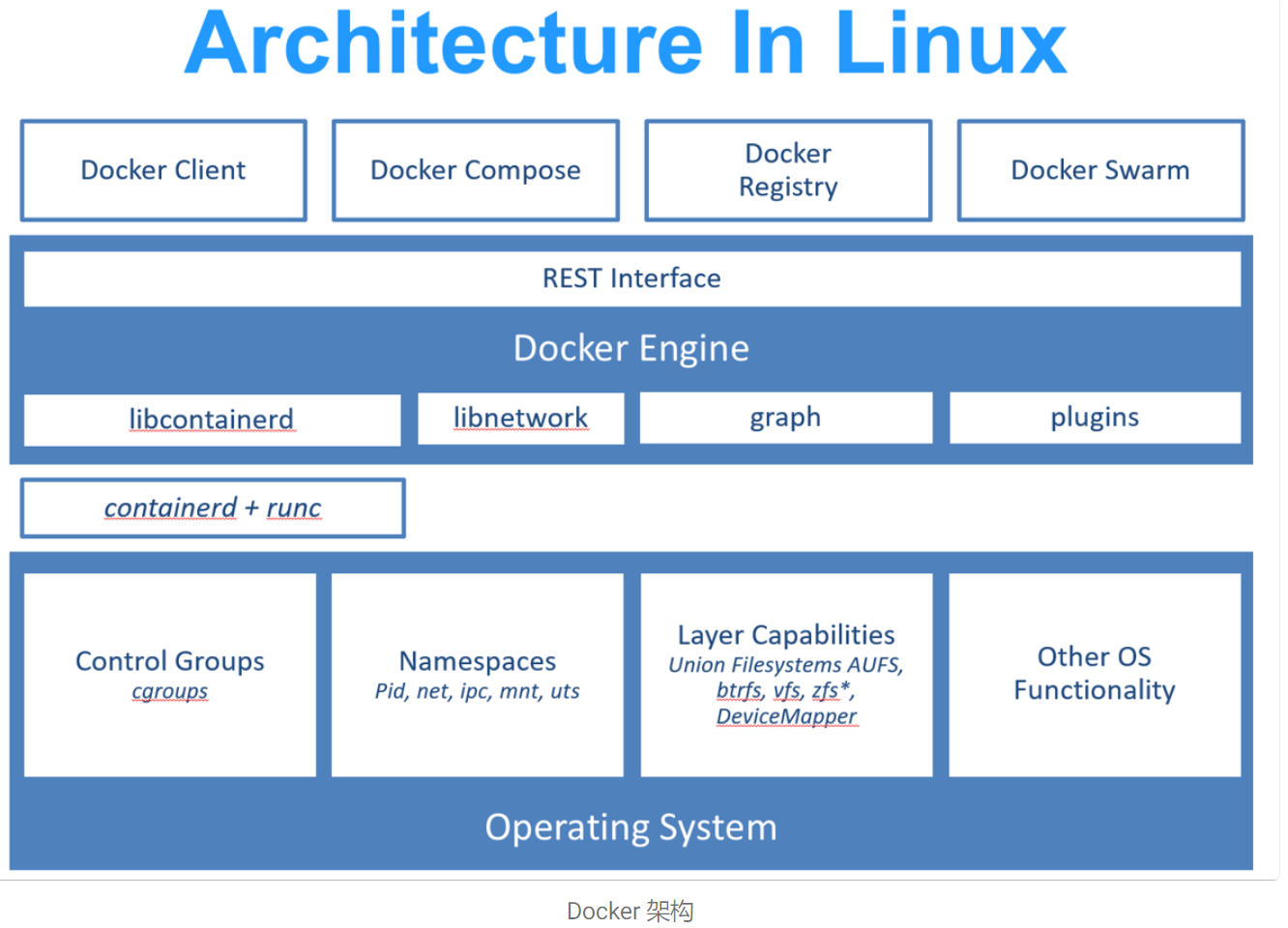 Docker 使用 Google 公司推出的 Go 语言 进行开发实现,基于 Linux 内核的 cgroup,namespace,以及 OverlayFS 类的 Union FS 等技术,对进程进行封装隔离,属于 操作系统层面的虚拟化技术。由于隔离的进程独立于宿主和其它的隔离的进程,因此也称其为容器。