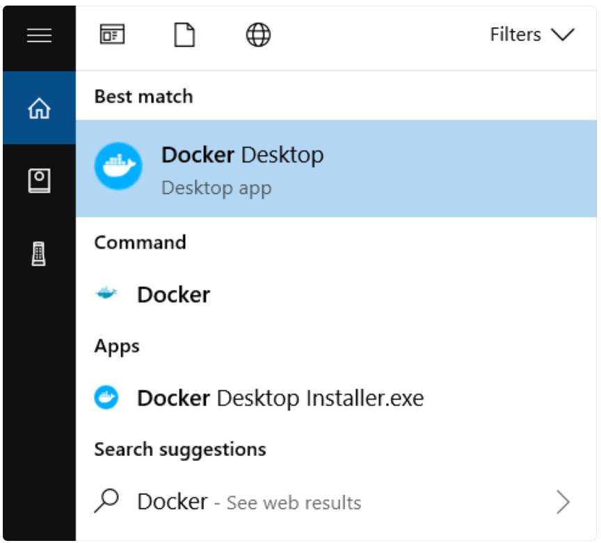 在 Windows 搜索栏输入 Docker 点击 Docker Desktop 开始运行。