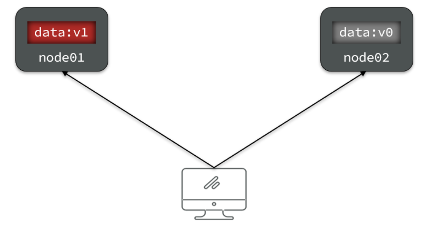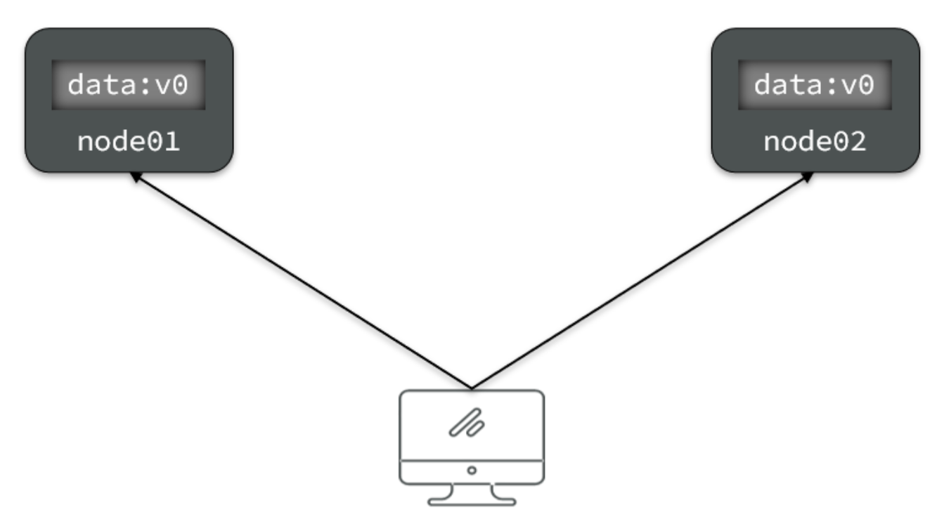 比如现在包含两个节点,其中的初始数据是一致的: