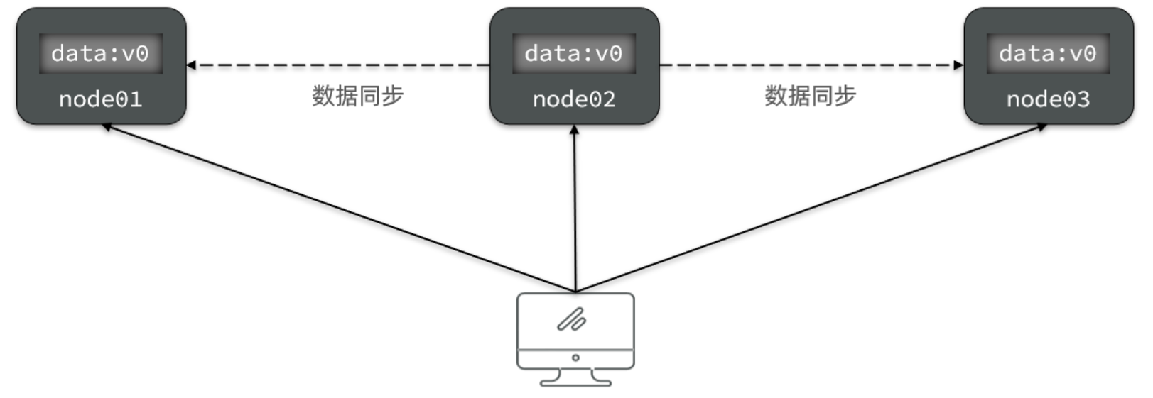 如图,有三个节点的集群,访问任何一个都可以及时得到响应: