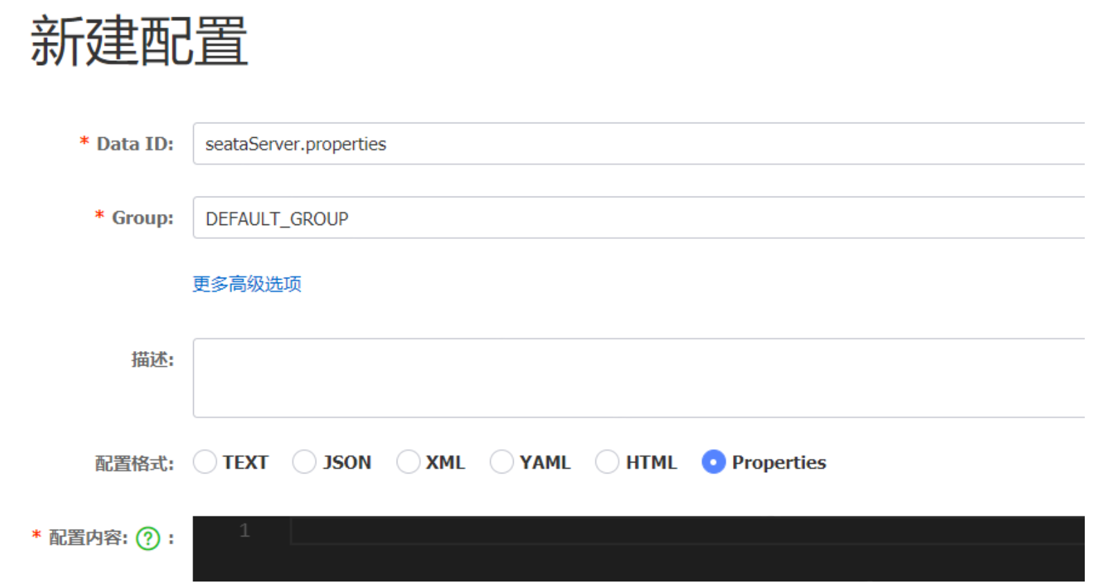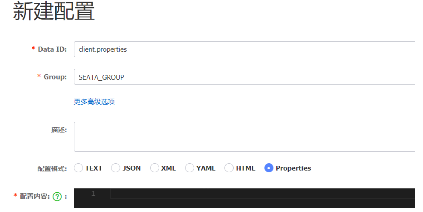 特别注意,为了让tc服务的集群可以共享配置,我们选择了nacos作为统一配置中心。因此服务端配置文件seataServer.properties文件需要在nacos中配好。