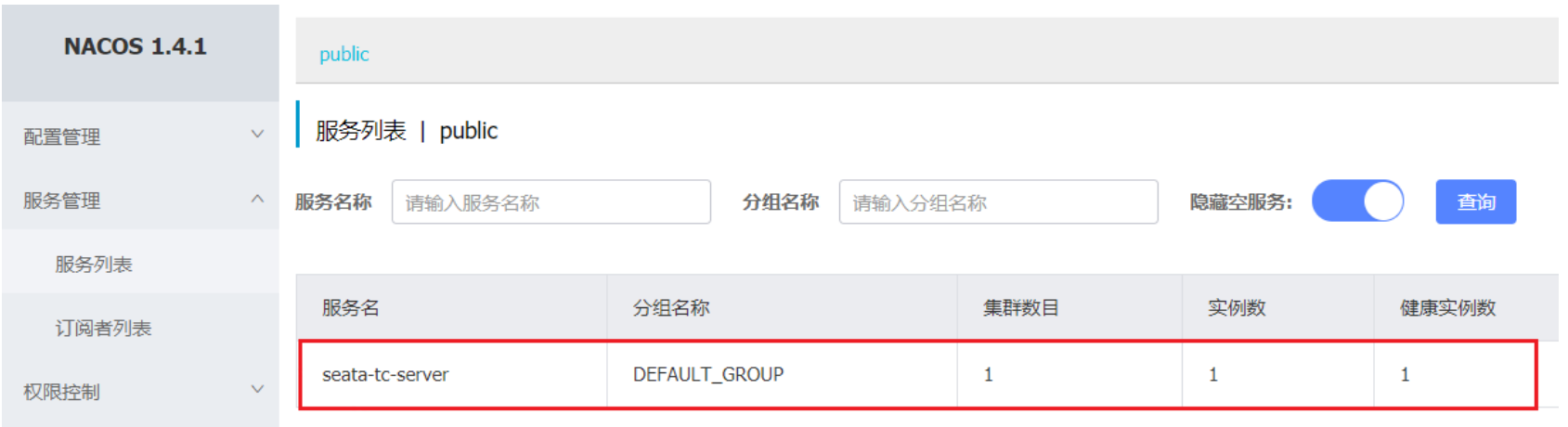 之前我们已经启动了一台seata服务,端口是8091,集群名为SH。