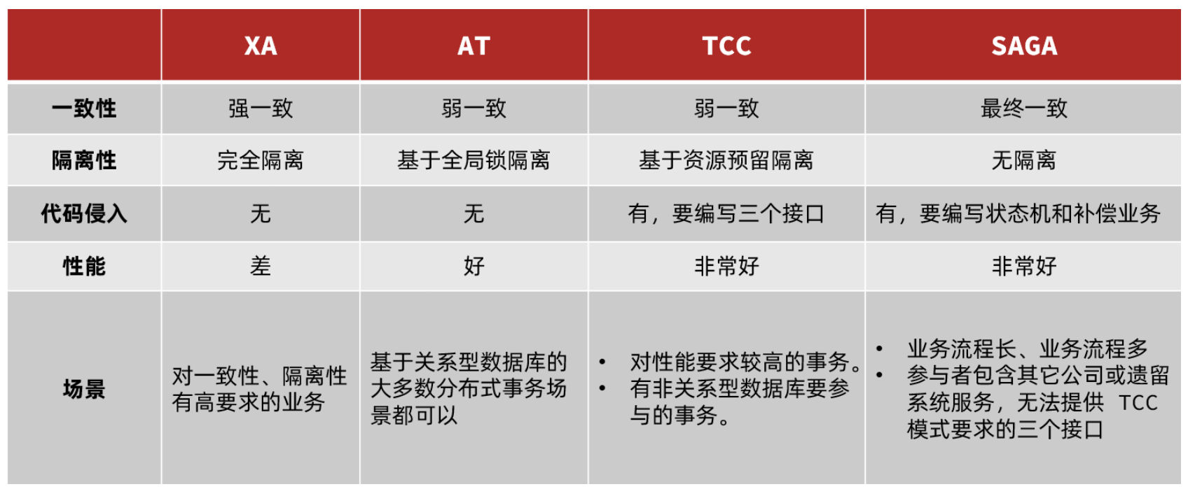 Seata基于上述架构提供了四种不同的分布式事务解决方案:
