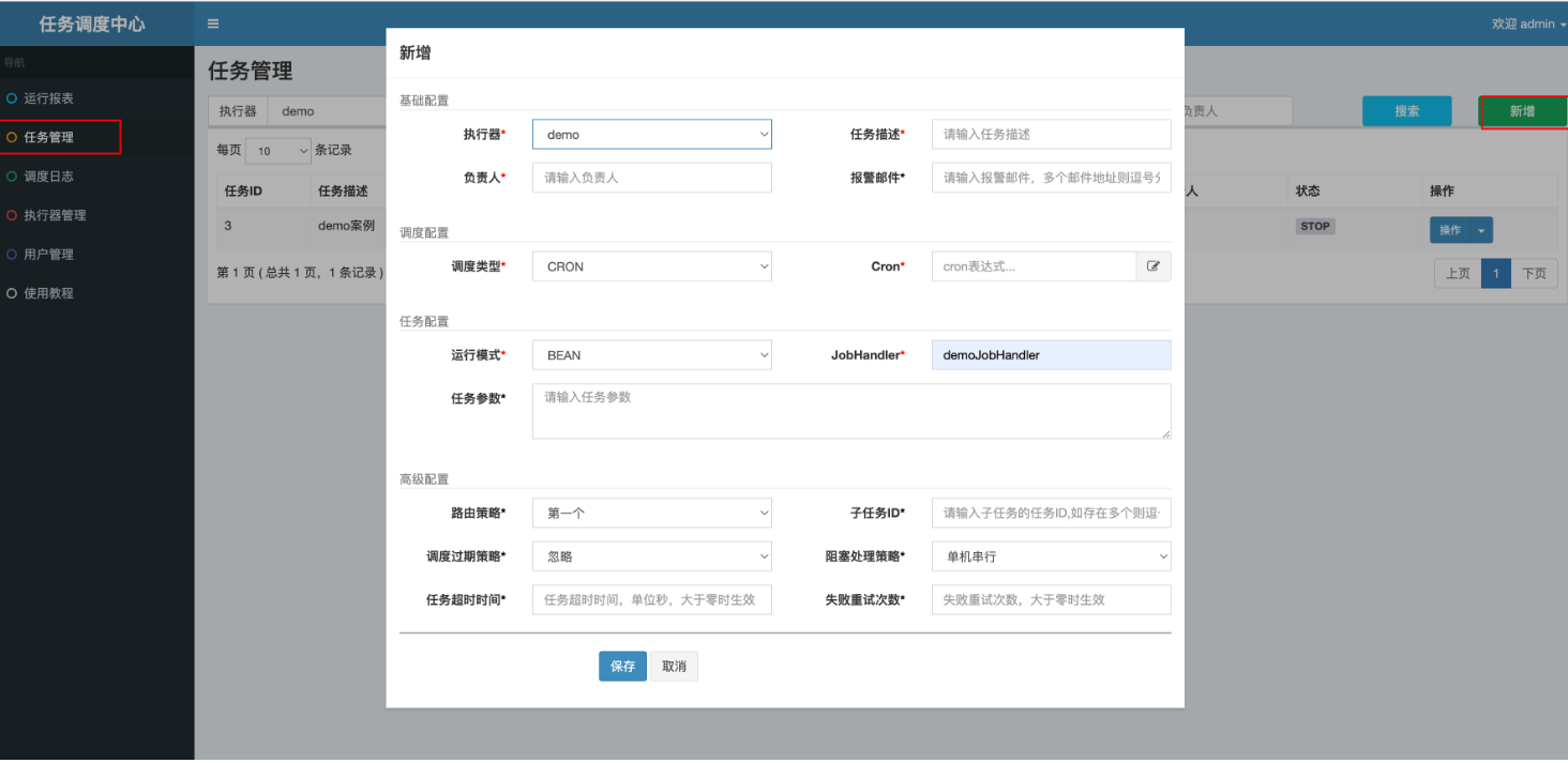 http://localhost:8080/xxl-job-admin 默认账号密码:admin/123456