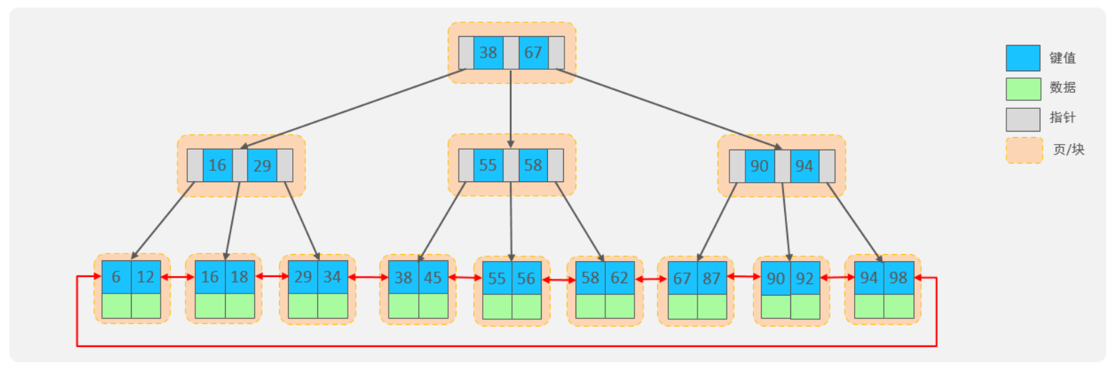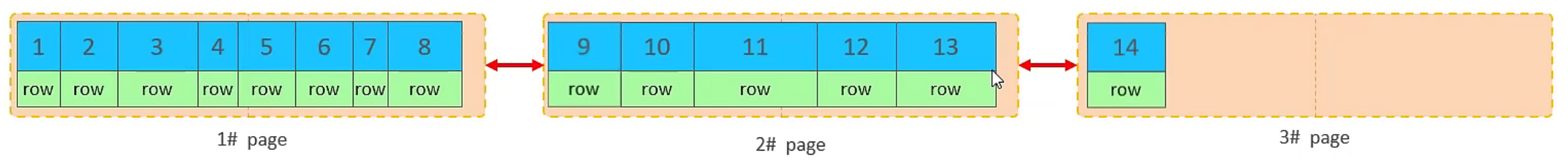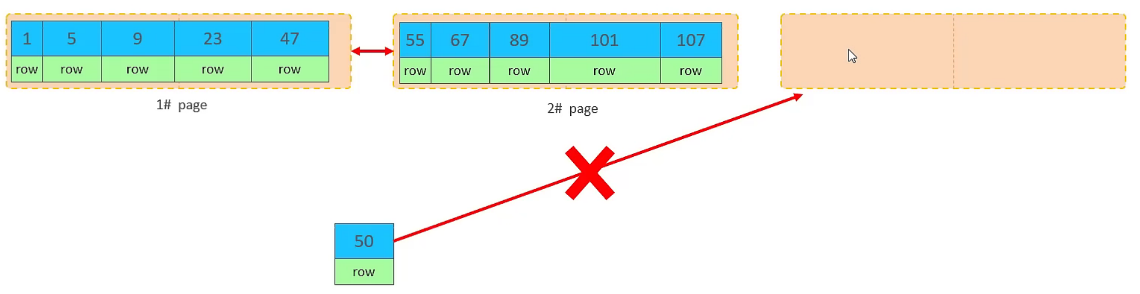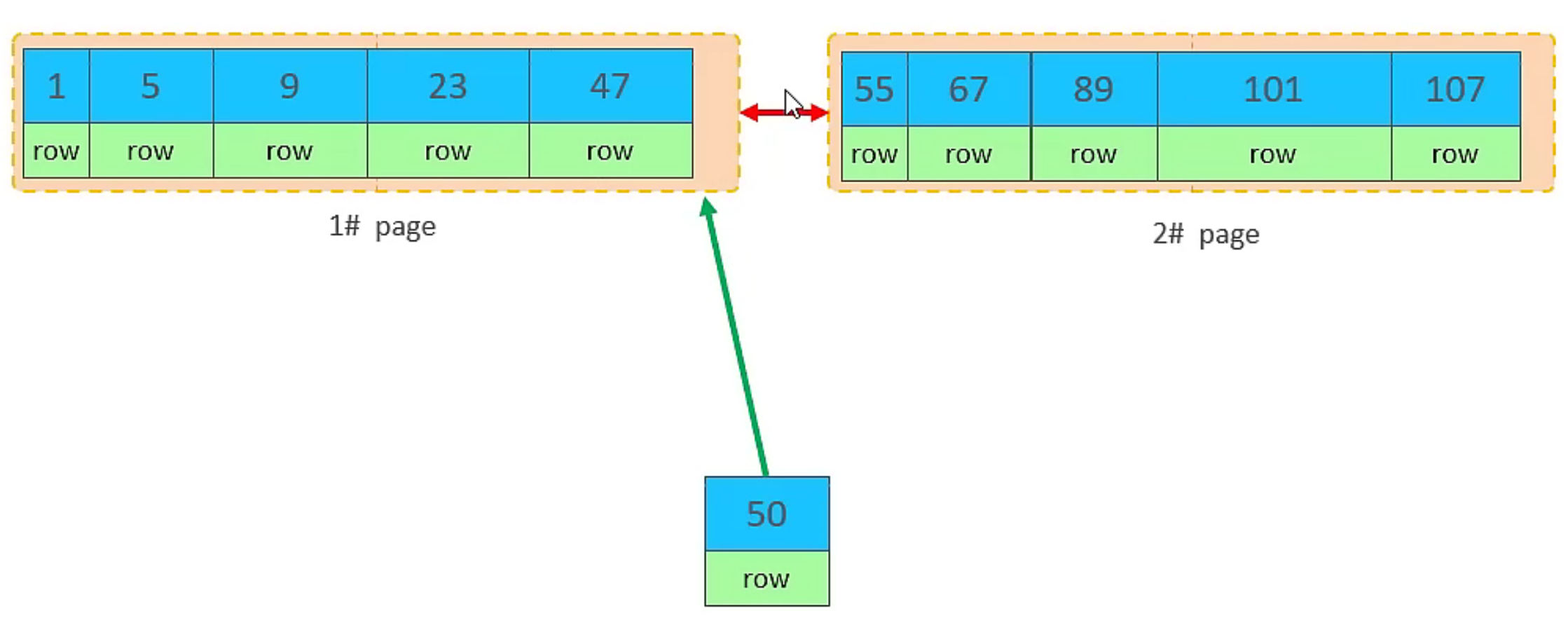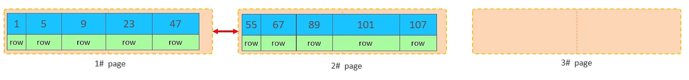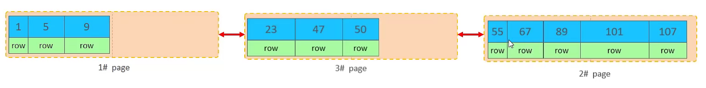 如果主键是顺序插入的,则会形成一个单向链表,结构如下: