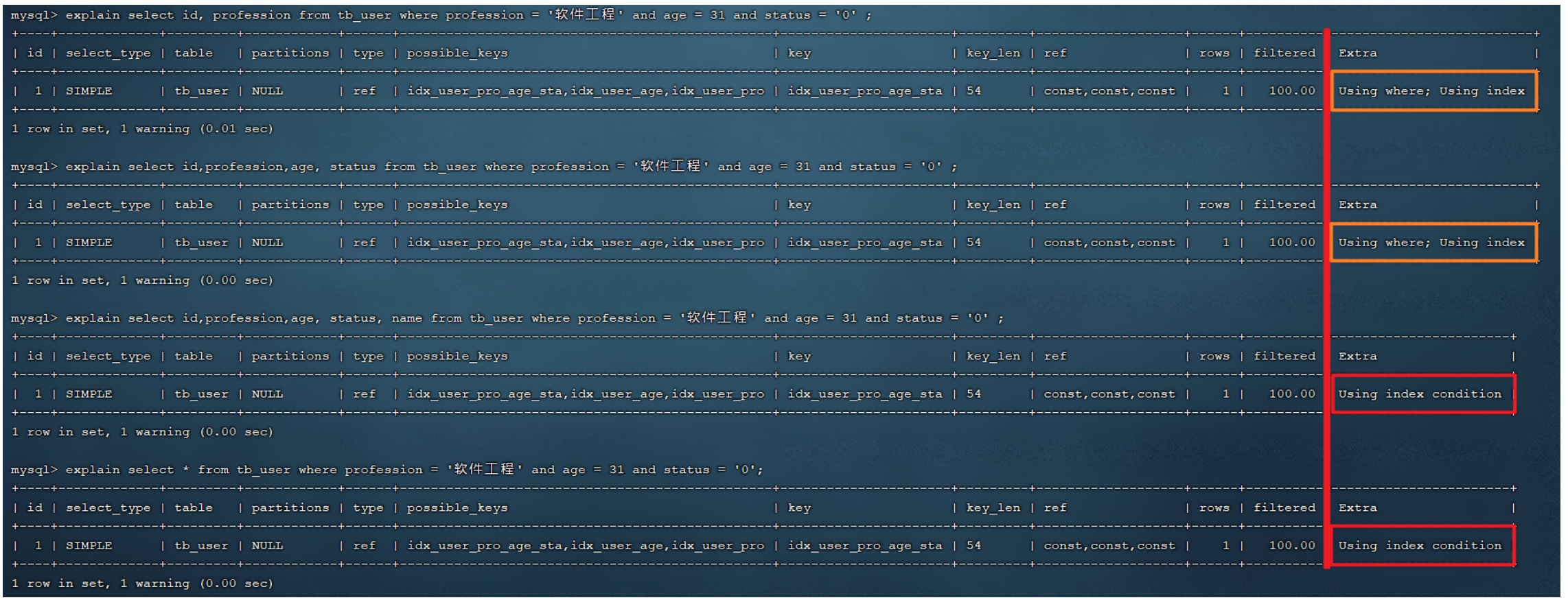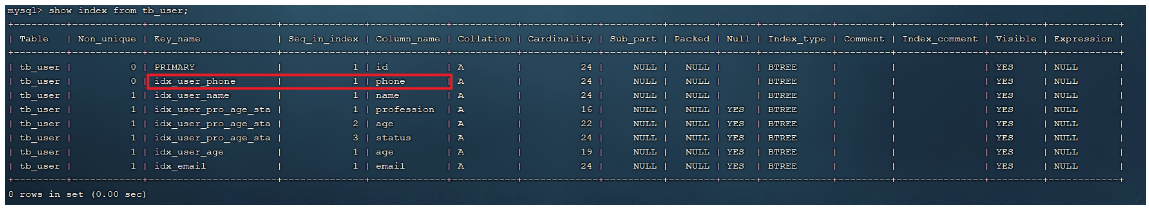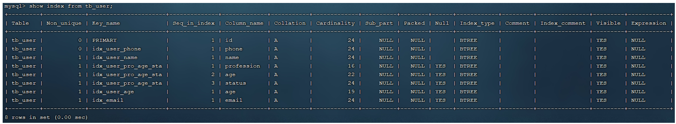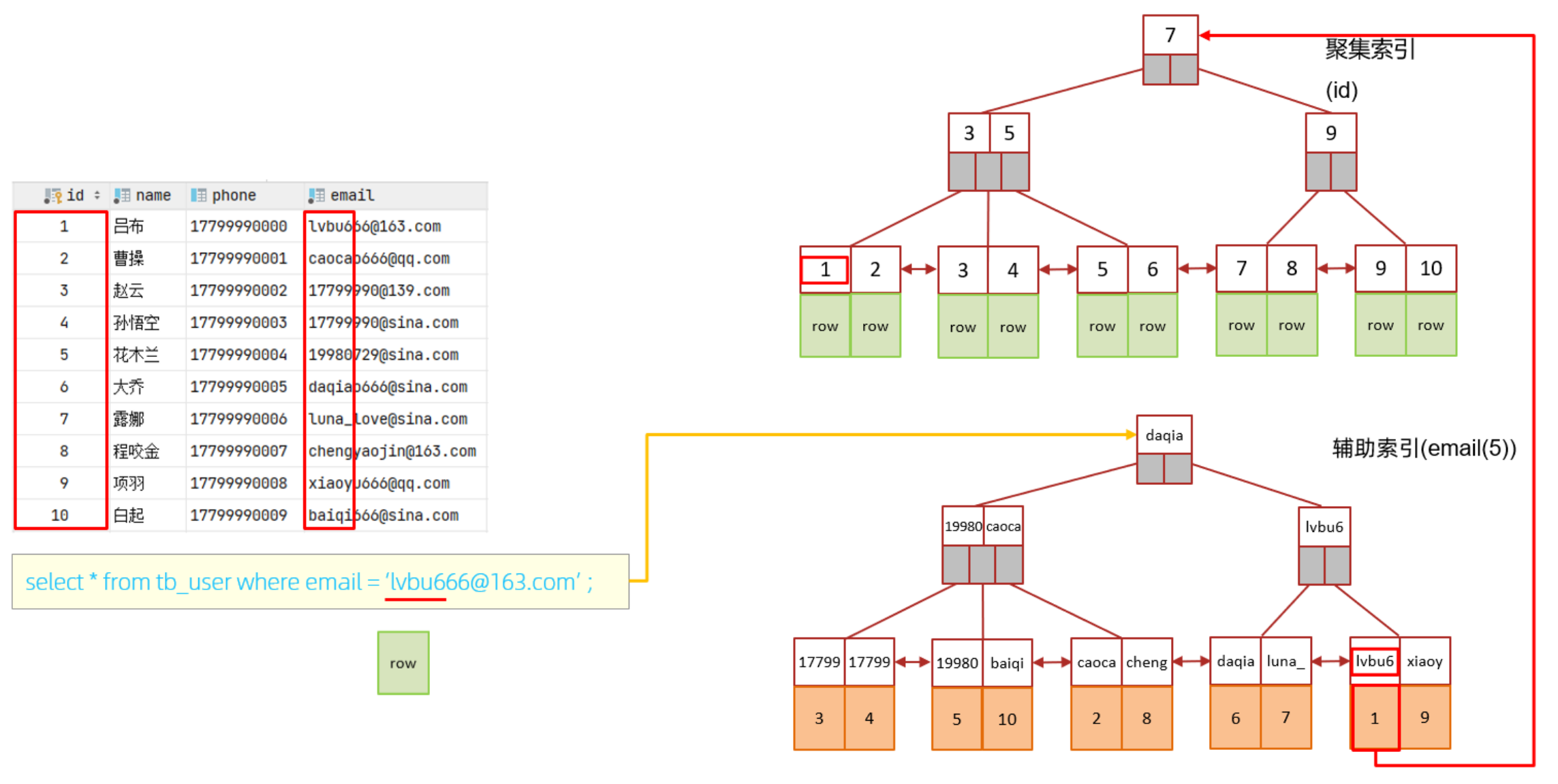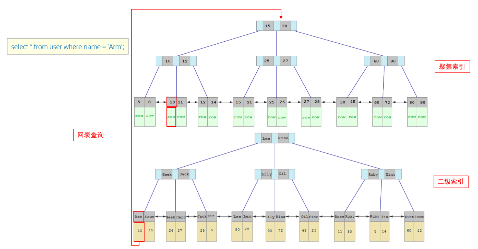 假如要执行的SQL语句为 : select * from user where age = 45;
