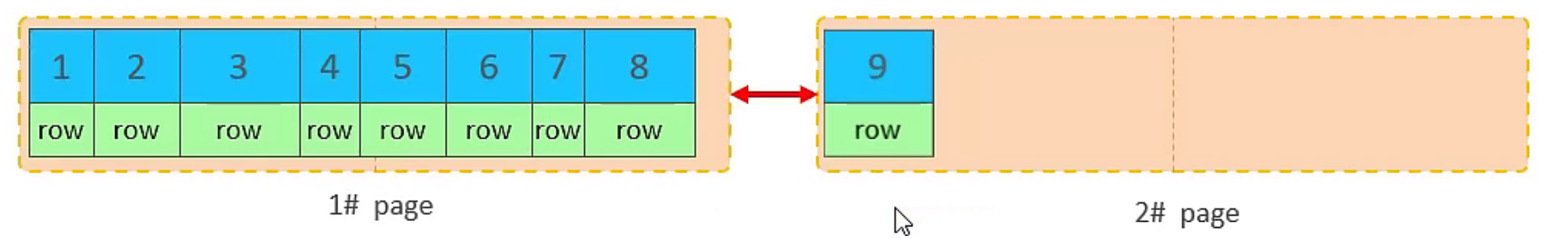 页 : 页是组成区的最小单元,页也是InnoDB 存储引擎磁盘管理的最小单元,每个页的大小默认为 16KB。为了保证页的连续性,InnoDB 存储引擎每次从磁盘申请 4-5 个区。