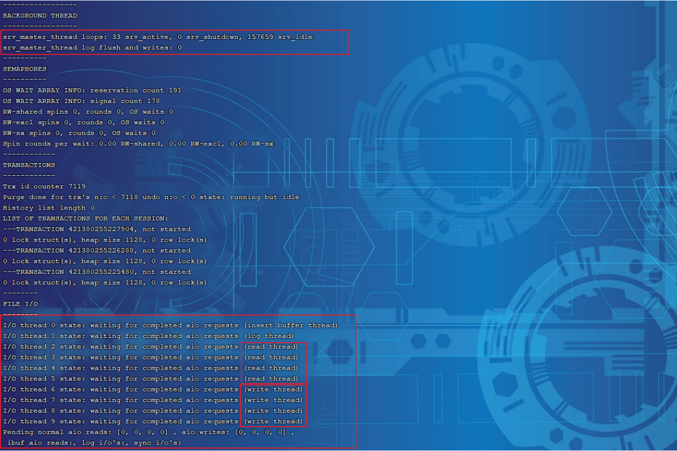可以通过以下的这条指令,查看到InnoDB的状态信息,其中就包含IO Thread信息。