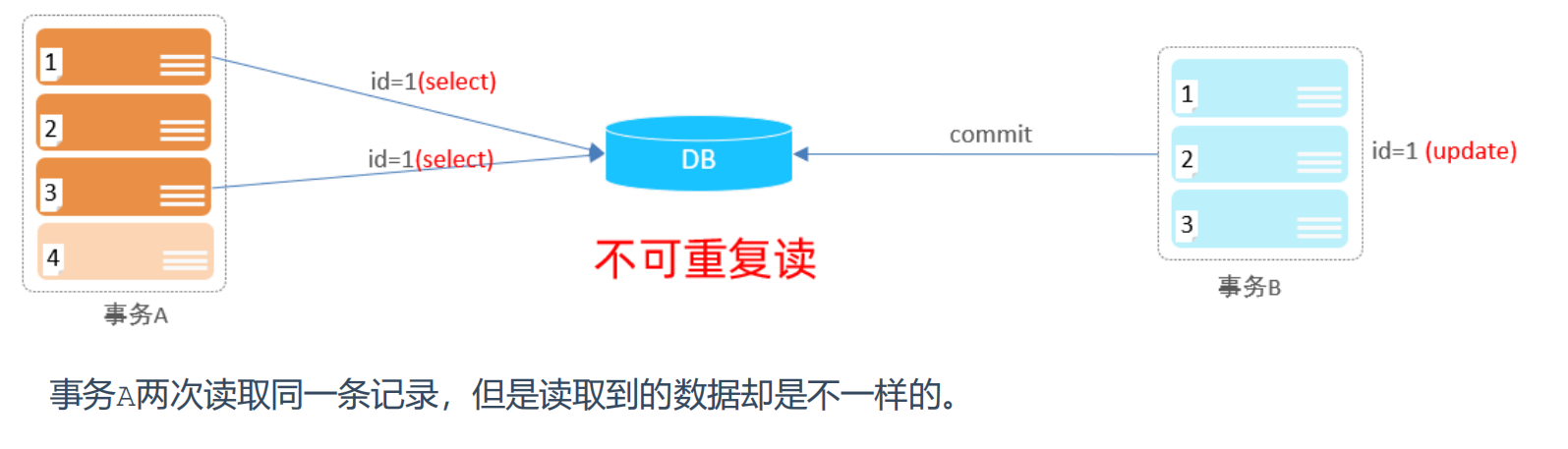 2). 不可重复读:一个事务先后读取同一条记录,但两次读取的数据不同,称之为不可重复读。