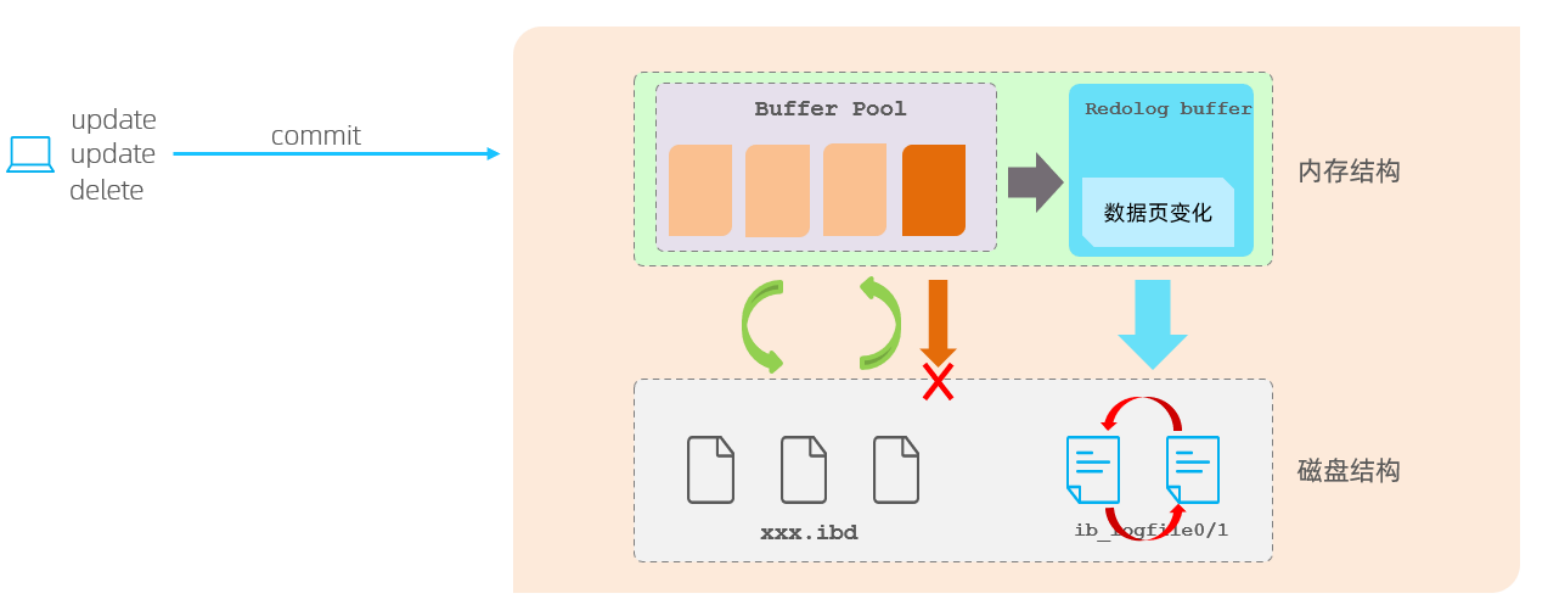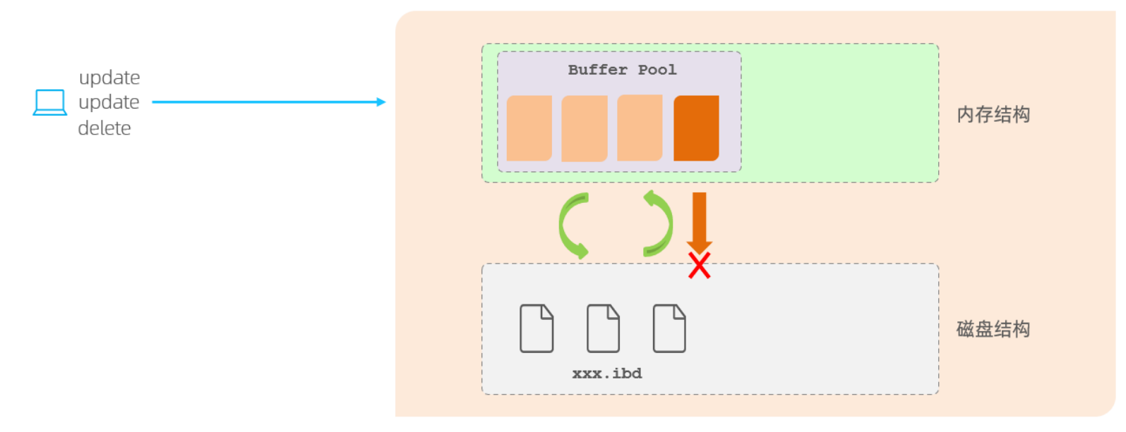 在InnoDB引擎中的内存结构中,主要的内存区域就是缓冲池,在缓冲池中缓存了很多的数据页。 当我们在一个事务中,执行多个增删改的操作时,InnoDB引擎会先操作缓冲池中的数据,如果缓冲区没有对应的数据,会通过后台线程将磁盘中的数据加载出来,存放在缓冲区中,然后将缓冲池中的数据修改,修改后的数据页我们称为脏页。 而脏页则会在一定的时机,通过后台线程刷新到磁盘 中,从而保证缓冲区与磁盘的数据一致。 而缓冲区的脏页数据并不是实时刷新的,而是一段时间之后将缓冲区的数据刷新到磁盘中,假如刷新到磁盘的过程出错了,而提示给用户事务提交成功,而数据却没有持久化下来,这就出现问题了,没有保证事务的持久性。