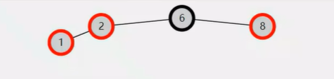 如果加入null值,如下图, 6到2的右孩子只有俩个黑色,而6到1或者8的孩子都是3个黑色,所以是不平衡的。