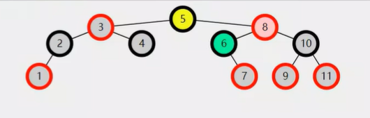 - 5.从根到任意一个叶子节点,路径中的黑色节点数一样(判断平衡的主要依据)