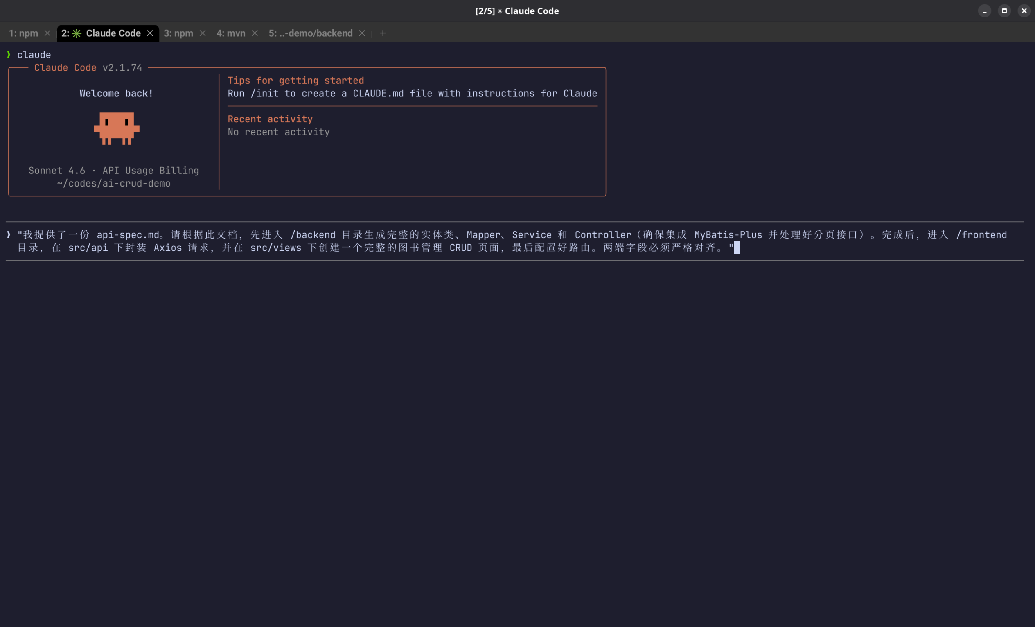 CRUD开发痛点在于字段对齐、DTO转换、Axios封装,亮点应突出CC如何自动化完成这些枯燥的匹配工作。 - 5 分钟全栈闭环:体验 AI 对传统开发效率的量级提升。