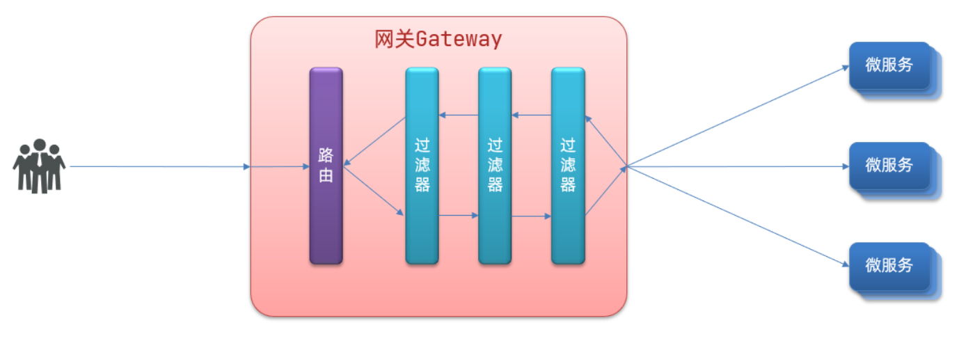 路由和负载均衡:一切请求都必须先经过gateway,但网关不处理业务,而是根据某种规则,把请求转发到某个微服务,这个过程叫做路由。当然路由的目标服务有多个时,还需要做负载均衡。