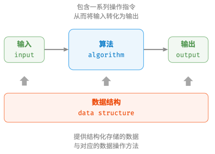 - 数据结构是算法的基石。数据结构为算法提供了结构化存储的数据,以及操作数据的方法。